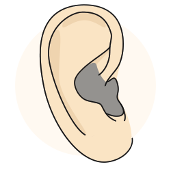 ITE hearing aids are true custom-designed hearing aids. The entire hearing aid is molded to match the contours of your outer ear. The hard plastic casing forms to the exact shape of your ear making to fit snugly. There’s also an ITE style available that only fills the lower part. ITEs do a great job of amplifying sound.